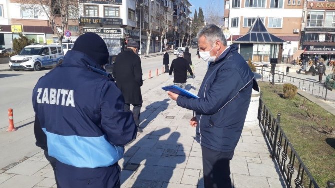 Amasya'nın Merzifon ilçesinde korona virüs (Kovid-19) ile mücadele kapsamında zabıta ve kolluk kuvvetleri tarafından sokaktan gelip geçen vatandaşlara Hayat...