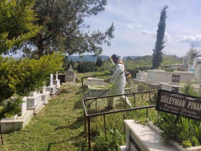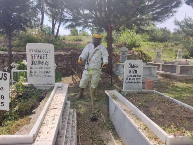 Yaklaşan Ramazan Bayramı öncesinde vatandaşların mezar ziyaretlerini daha rahat ve sağlıklı bir şekilde yapmaları amacıyla gerçekleştirilen çalışmalarda tüm mezarlıklarda yabani ot temizliği başta olmak üzere çalışma yapılıyor.