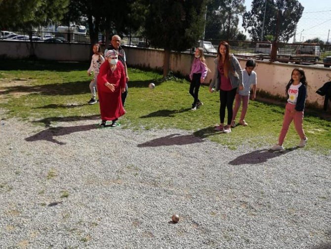 Söke Hilmi Fırat Huzur Evi yaşlıları bocce öğreniyor.