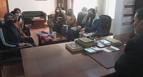 Söke KYK Meryem Yazıcıoğlu Kız Yurdu'nda kalan üniversite öğrencilerine yönelik verilen Kur'an-ı Kerim kursunda Kur'an-ı Kerim'i okumaya geçen öğrenciler İlçe Müftüsü Ali Saim Doğru'yu makamında ziyaret ederek teşekkür etti.