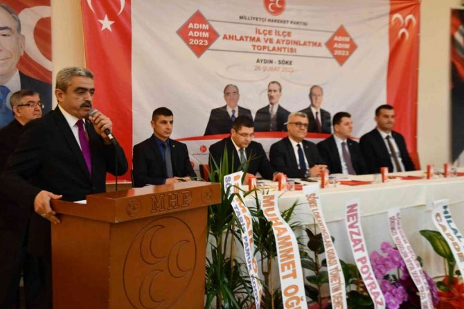Milliyetçi Hareket Partisi (MHP) Genel Merkezi tarafından başlatılan "Adım adım 2023" programı kapsamında ilçe ilçe aydınlanma toplantısı Aydın'ın Söke ilçesinde gerçekleştirildi. 2023 seçimlerine doğru yapılacak çalışmaların konuşulduğu toplantıda; bir sonraki genel seçimlerde, MHP'nin meclis içindeki milletvekili sayısının tarihte görülmemiş oranda arttırılması gerektiğinin vurgusu yapıldı.