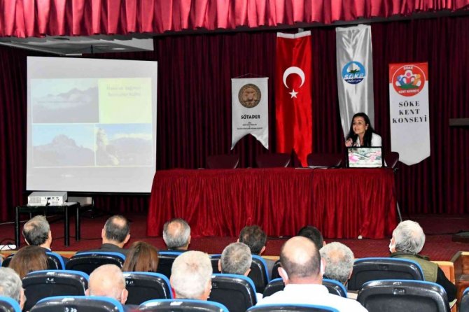 Doç. Dr. Zeliha Gider Büyüközer'in akıcı ve ilgi çekici sunumunun ardından Söke Kent Konseyi Başkanı Saliha Ondört, Söke Belediye Başkan Yardımcısı Veli Devrim Yerli ve Söke Kaymakamı Ümit Hüseyin Güney tarafından teşekkür belgesi, hediye ve çiçek takdimi yapıldı.