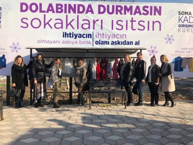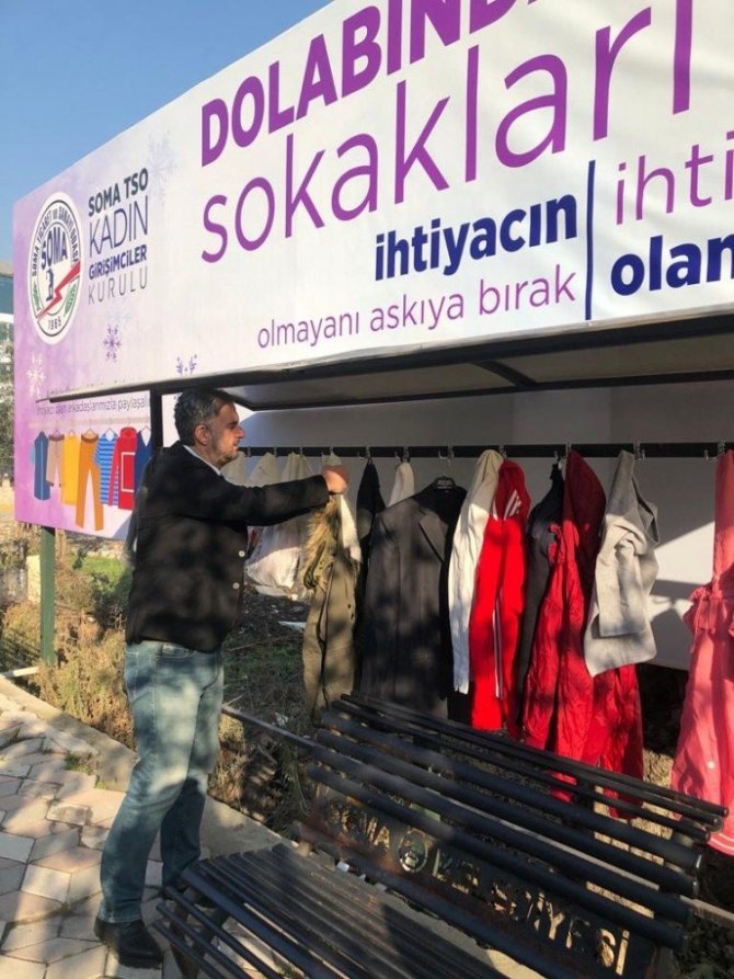 Soma Ticaret ve Sanayi Odası Kadın Girişimcileri Kurulu tarafında hayata geçirilen "Dolabında Durmasın, Sokakları Isıtsın" projesi kapsamında ihtiyaç sahibi vatandaşlara kışlık kıyafet yardımı yapılacak.