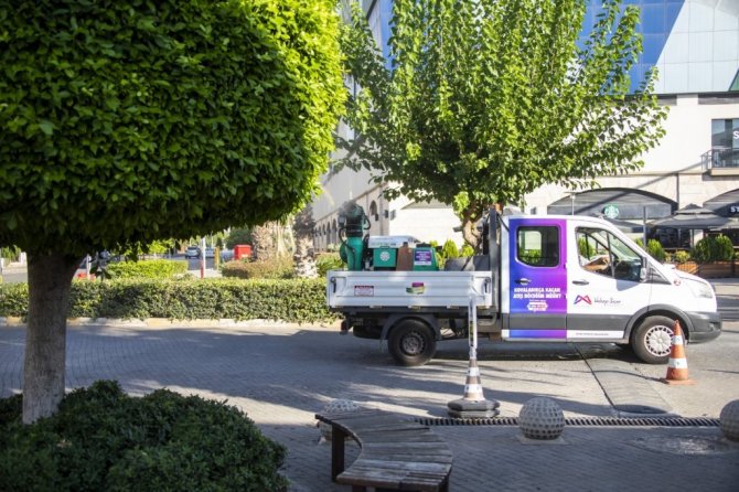 İlaçlamaya sabah erken saatte başladıklarını söyleyen Gül, "Bu mist blower dediğimiz araçlarımızla vatandaşlarımız daha sokağa çıkmadan sabah saat 5.30 civarında ilaçlamaya başladık. Parklar, yollar, yürüme alanları boşken erken saatlerde ilaçlıyoruz. Sabah erken saatte, güneşin doğuşu ile beraber konakladığı yerden çıktığı için bunları daha rahat yakalamak ve daha rahat etkisiz hale getirmek için sabahın erken saatlerinde çalışmalarımıza başlıyoruz. Beyaz sinek mücadelesinde çalışan 5 adet mist blower aracımız var. Onun dışında da bizim holderli dediğimiz el hortumuyla yapılan 4 tane yol aracımız var" diye konuştu.