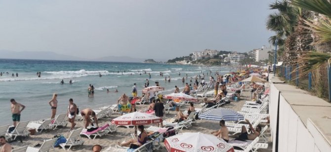 Aydın'ın Kuşadası ilçesinde son kez uygulanacak Pazar günü sokağa çıkma kısıtlaması öncesi vatandaşlar deniz akın etti.