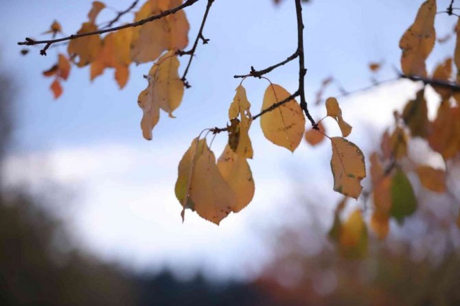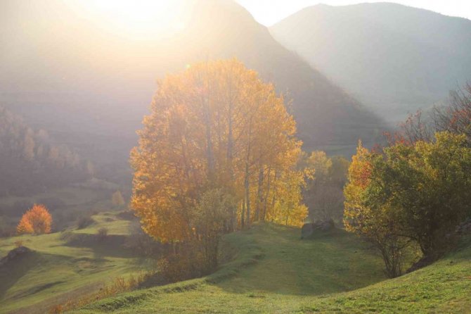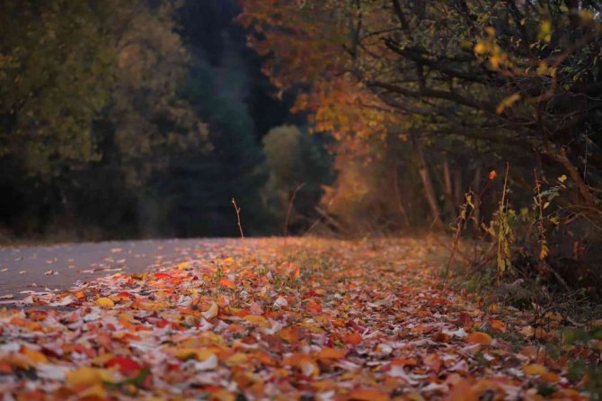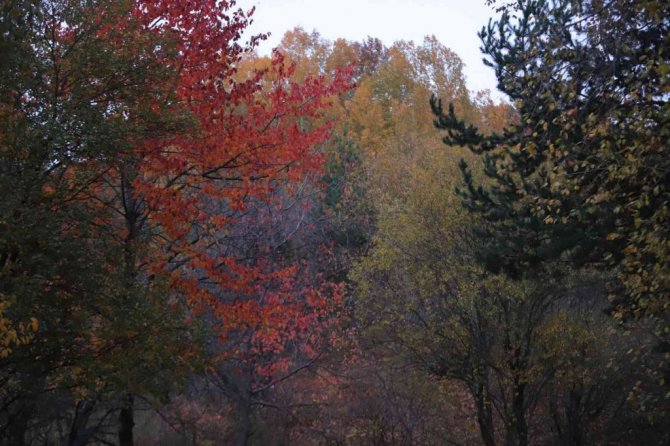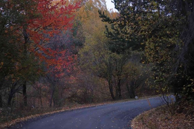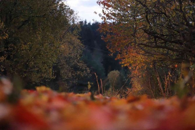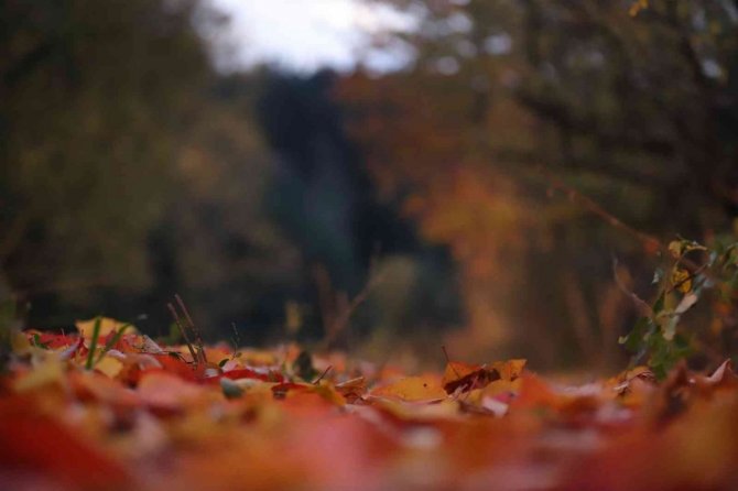 Bir bölümü sararırken bir bölümü hala yeşilliğini koruyan ağaçlar, yöreye ayrı bir renk katıyor. Ağaçların renk cümbüşü izleyenleri hayran bırakırken, yerlere dökülen yapraklar da kış öncesi adeta toprağa örtü oluyor.
