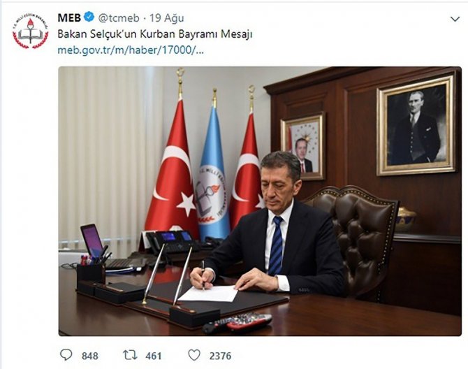 Cumhurbaşkanlığı Hükümet Sistemi’ne geçilmesinin ardından Cumhurbaşkanı Recep Tayyip Erdoğan’ın yeni kabinede Milli Eğitim Bakanı olarak Ziya Selçuk’a görev verdi. Eğitim alanında birçok eseri bulunan Prof. Dr. Ziya Selçuk’un MEB’e getirilmesi kamuoyunda olumlu karşılandı. Bakan Selçuk’un attığı tweetler sosyal medyanın gündemine otururken, MEB’in sosyal medya hesapları ise önemli oranda takipçilerin listesine girmeyi başardı. MEB’in resmi Twitter hesabında paylaşımlar bakan programları, fotoğrafları ve bilgilendirme konuları yer alıyor. Önceki bakanlarda atılan tweetler ortalama 150-300 beğeni alırken Bakan Selçuk’un göreve gelmesinin ardından paylaşımların beğeni oranı 8 binlere kadar ulaştı. Bakanlığın bir diğer resmi sosyal medya hesabı Instagram ise takipçi sayısı arttı. Paylaşılan fotoğrafları takipçiler tarafından beğeni oranı 200-300 arasında iken bu oran yeni bakan ile beraber beğeni oranı 2 binlere kadar ulaştığı görüldü.