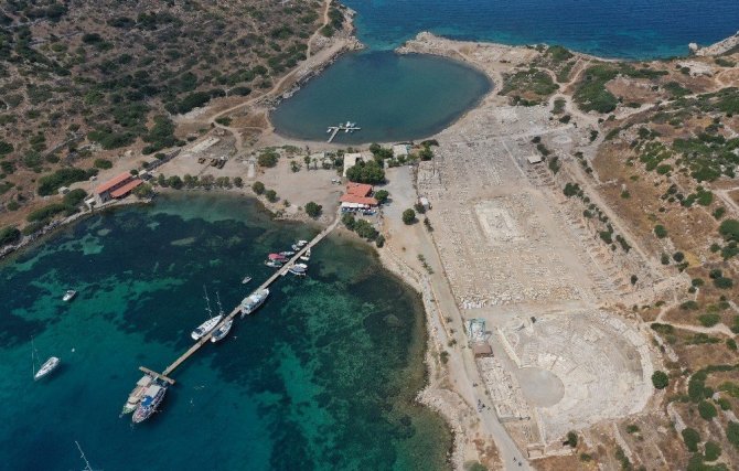 Karia bölgesinin önemli liman kentlerinden birisi olan Datça ilçesindeki Knidos antik kenti, Afrodit heykeli ile ünlendi. 2 bin yıl önce şehir nüfusunun 70 binlere ulaştığı kent, Bizans’ın son dönemlerinde bir yandan depremler, diğer yandan korsan saldırılar ile yıkılıp yağmalanınca terk edildi. Antik çağların ünlü matematikçi ve filozof Eudoxus, en iyi yontulmuş çıplak Afrodit heykelini yapan Heykeltıraş Praxiteles, Skopas, Bryaxis, Mısır’daki Alexandria Feneri’nin mimarı Sostrates, Knidos’da yaşadı söylenir. Büyük limanın hemen yanı başındaki 5 bin kişilik tiyatrosu günümüze kadar gelen Knidos’un, 20 bin kişilik büyük tiyatrosunun mermerlerinin bir bölümü İstanbul Dolmabahçe sarayında, bir bölümü ise 1830 yılında gemilerle Mısır’a götürülerek Kavalalı Mehmet Ali Paşa’nın Kahire’de yaptırdığı sarayda kullanıldı.
