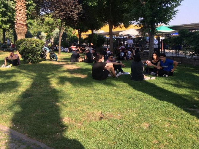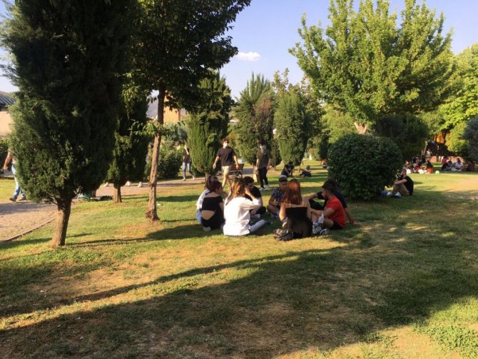 Pandemi dolayısıyla uzun süre okuldan ve arkadaşlarından uzak kalan Aydınlı gençler, Nevzat Biçer Parkı'na akın etti. Yoğunluğun yaşandığı parkta zaman zaman sosyal mesafe sıfıra kadar düşse de polis ekipleri sık sık gençleri sosyal mesafe ve maske konusunda uyardı.