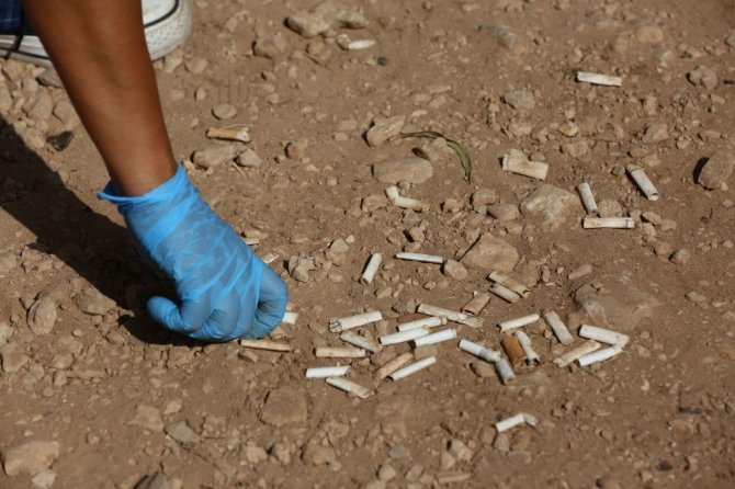 Yaklaşık 80 kişinin katıldığı etkinlikte gönüllüler sahile atılan izmaritleri tek tek toplarken, aileleriyle birlikte etkinliğe katılan çocuklar da topladıkları atıklarla farkındalığa ortak oldu.