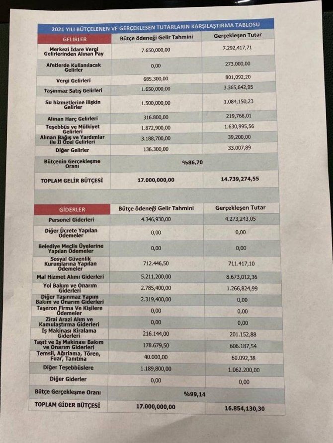 Apaydın açıklamasında, "Şeffaf belediyecilik adına söz verdiğimiz gibi her yıl yayınlıyoruz. Gerçekleşme oranları mükemmel seviyede olup tüm gayretimizi gösteriyoruz. Bizlere inanıp güvendiniz için teşekkür ediyor saygılarımızı sunuyoruz." dedi.