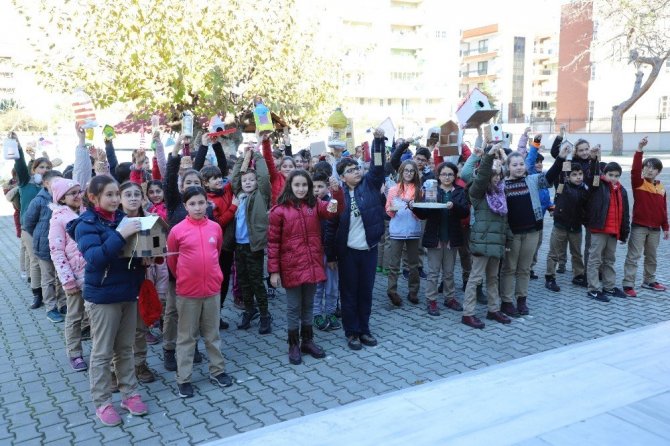 Okul öğretmenlerinden Hatice İncel’in koordinatörlüğünde gerçekleştirilen ‘Kuşlara bir damla umut’ projesi kapsamında, öğrenciler tarafından yapılan kuş yuvaları ve yemlikler, okulun bahçesinde çeşitli noktalardaki ağaçlara asıldı. Okul bahçesindeki ulaşamadıkları ağaçlara da Manisa Büyükşehir Belediyesi İtfaiye Dairesi Başkanlığı ekiplerinin yardımlarıyla kuş yuvaları asıldı.