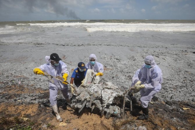 Sri Lanka'da 25 ton nitrik asit, farklı kimyasal madde ve kozmetik ürünler taşıyan konteyner gemisi MV X-Press Pearl'de 20 Mayıs'ta çıkan yangın 8. günde kontrol altına alınabildi. Sri Lanka Donanması, Hindistan Deniz Kuvvetleri ve Avrupa'dan gelen ekiplerin de yer aldığı söndürme çalışmaları günler sonra sonuç verirken, yangının harabeye çevirdiği gemi şimdi de çevre felaketine yol açtı. Gemiden kopan parçalar ve yanmış peletler kıyıya vurdu. Ülkenin popüler bir turizm merkezi olan Negombo'da kıyı şeridi küle benzer bir örtüyle kaplandı. Sri Lanka Donanma personeli koruyucu kıyafetler giyerek sahili temizlemeye çalıştı. Sri Lanka Liman Otoritesi Başkanı Daya Rathnayake, yangının kontrol altına alındığını, ancak yine de çok sıcak olduğu için gemiye binemediklerini ifade etti. Donanma personelinin gemiyi kıyıdan uzaklaştırmak istediğini belirten Rathnayake, bunun mümkün olup olmayacağını belirleyebilmek için geminin son durumunun değerlendirilmesi gerektiğini söyledi.