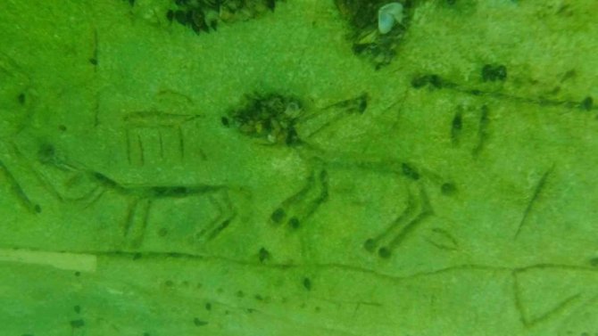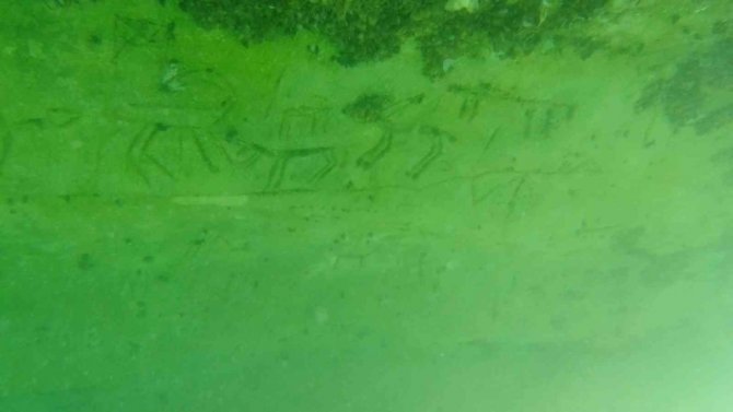 Tarihe ışık tutacak olan figürler ilk günkü canlılığını su altında korurken, insan, dağ keçisi, at, kurt, tilki, leylek gibi çeşitli hayvan figürleri ve değişik şekiller resimde yer alıyor. Resmedilen sahnenin uzunluğunun 8 metre, genişliğinin ise yaklaşık 2 metre olduğu biliniyor. Dünyada Paleolitik Dönem'e ait tarihlenen toplam 6 adet yer bulunduğu, Paleolitik Dönem'in 2 milyon yıl önce başladığı ve 10 bin yıl önce son bulduğu biliniyor.