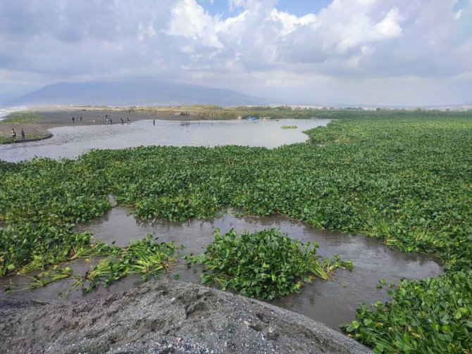 Hatay'ın inci gerdanı olarak bilinen Asi Nehri'nin bazı kısımlarını kaplayan "su canavarı" olarak bilinen su sümbülleri, bugün yaşanan sağanak yağış sonrası nehrin denize döküldüğü bölgeyi istila etti.