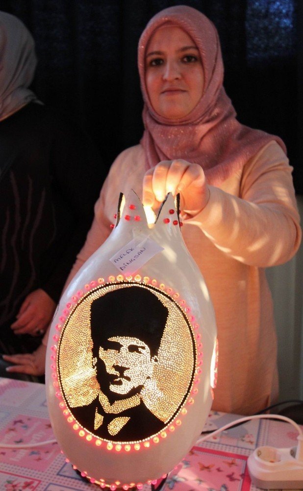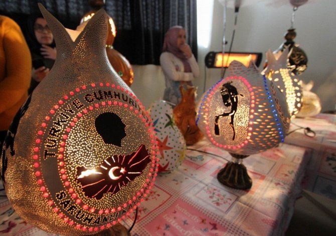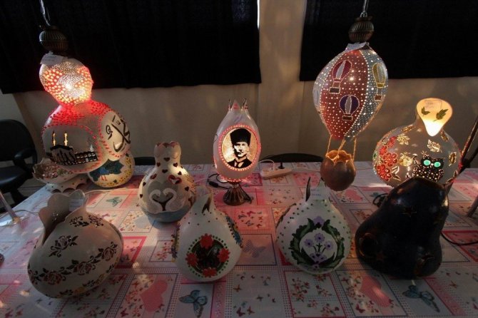 Çalışma ve İş Kurumu (İŞ-KUR) Manisa İl Müdürlüğü’nce “Özel Politika ve Uygulamaların Geliştirilmesi” projesi kapsamında Saruhanlı Belediyesi ve Halk Eğitim Merkezi Müdürlüğü işbirliğinde açılan "Su Kabağı İşleme Ustası" kursu tamamlanarak hazırlanan eserler sergiye sunuldu.