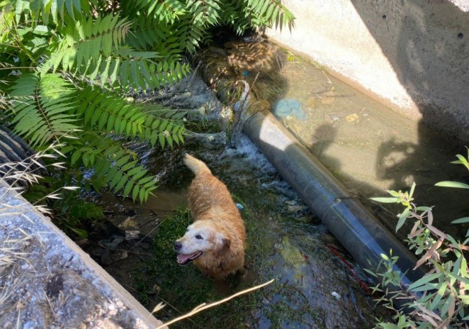 Kütahya'nın Tavşanlı ilçesinde su kanalına düşen Golden cins köpek, vatandaşlar tarafından kurtarıldı. İlçenin Kavaklı Mahallesi'nde bulunan galericiler sitesi yanında, esnaflar havlama sesi duymaları üzerine çevrede araştırma yaptı.