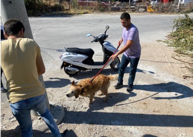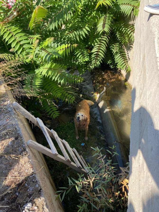 Esnaflardan Halil Çürük, köpeğin su kanalında olduğunu fark etti. Ahşap merdiven ve halat bulan Çürük ve arkadaşları, çevre sakinlerinin de yardımıyla, köpeği düştüğü yerden çıkarmayı başardı.
