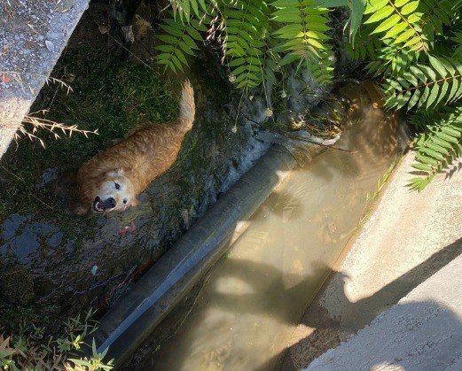 Kütahya'nın Tavşanlı ilçesinde su kanalına düşen Golden cins köpek, vatandaşlar tarafından kurtarıldı.