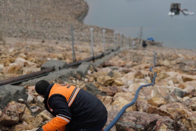 Başkan Bilgin barajda devam eden su alma platformu ve isale hattı çalışmalarını gece geç saatlerde de inceleyerek ekiplere talimatlar verdi.