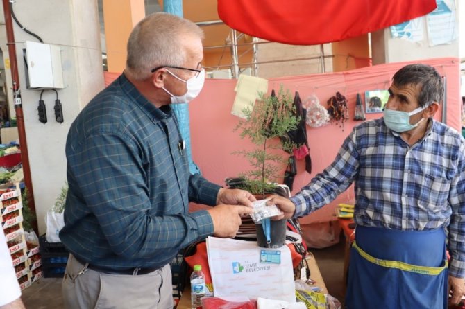 İzmit Belediyesi üst yönetimi ve İzmit Çınar Ekibi, Doğu Kışla Pazar'ında esnaf ve vatandaşlara yüzde 30 tasarruf sağlayan su aparatları dağıttı.