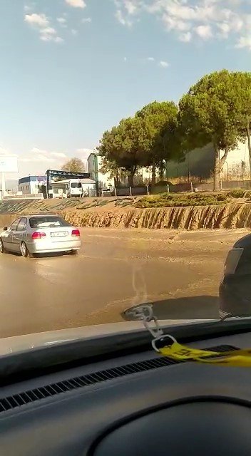 Denizli'nin Honaz ilçesinde, dere yatağına kurulan su toplama bendinin yıkılması sonucu, kent merkezindeki Ankara Bulvarında oluşan birikintiler trafiği...
