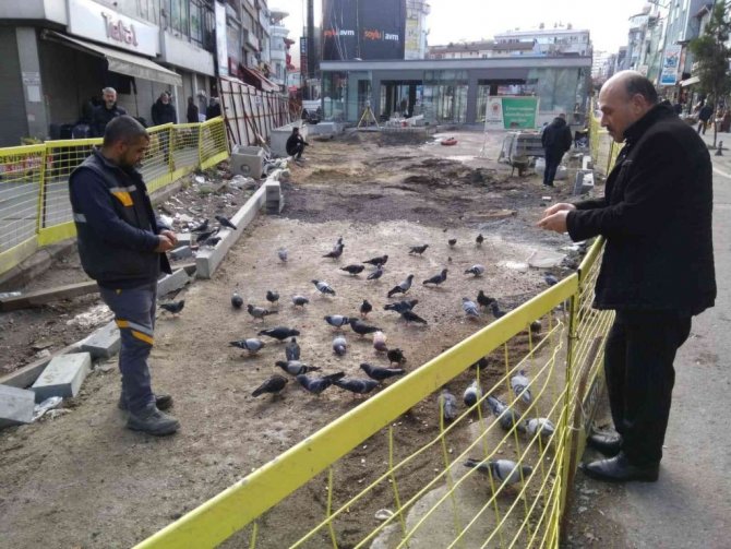 İnşaatın bekçiliğini yaparken güvercinleri beslediğin belirten Erkan Esen, "Daha önce burada bir çeşme vardı. Çeşmenin yanında bu güvercinlerimiz mesken tutardı. Yine aynı olacak. Meydan biraz daha genişliyor. Çeşmemizi de yapacağız. Güvercinlerimiz de aynı şekilde olacak. İnşaat devam ederken biz çalışanlar elimizden geldiğince bu canlılarımıza baktık. Sularını, yemlerini her gün verdik. Önümüzdeki günlerde daha da iyi olacak inşallah" dedi.