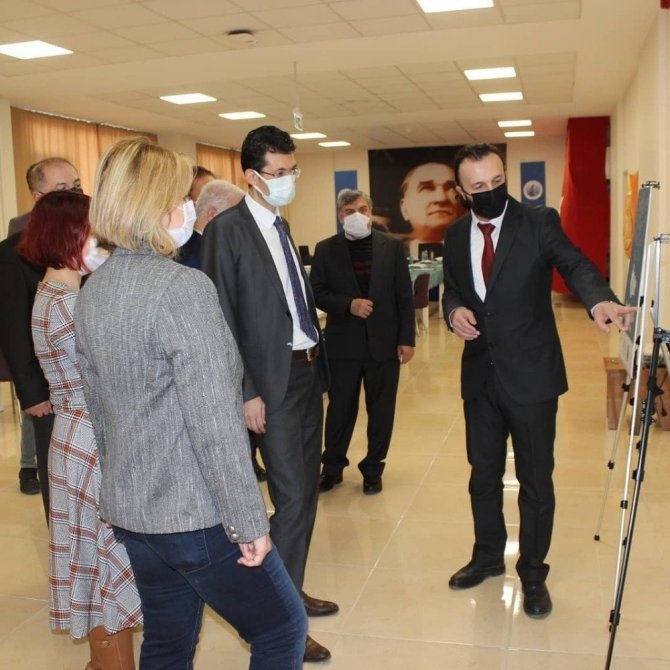 Afyonkarahisar'ın Şuhut ilçesinde 2021 Aile Yılı kapsamında Şuhut Meslek Yüksekokulu'nda açılan Afiş Sergisi Şuhut'u vatandaşlar ve protokol üyeleri...