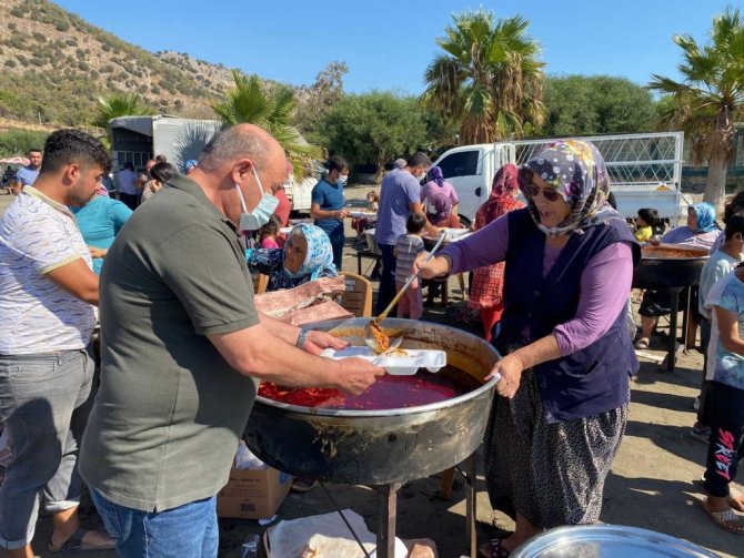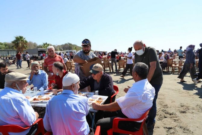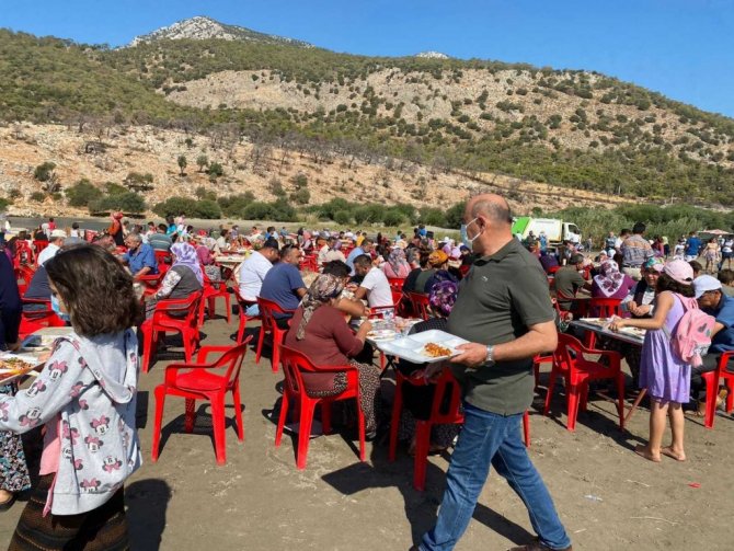 Muğla'nın Seydikemer ilçesi Karadere Mahallesi'nde deniz kenarında bu yıl 19'uncusu yapılan şükür yemeğine binlerce kişi katıldı. Her sene gerçekleştirilen duada bu yıl da şükür yemekleri yenilip, hortum ve afetlere karşı dualar edildi.