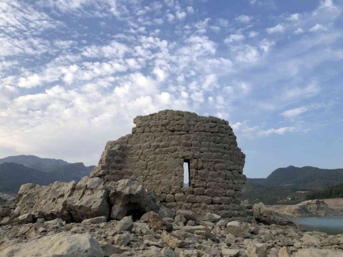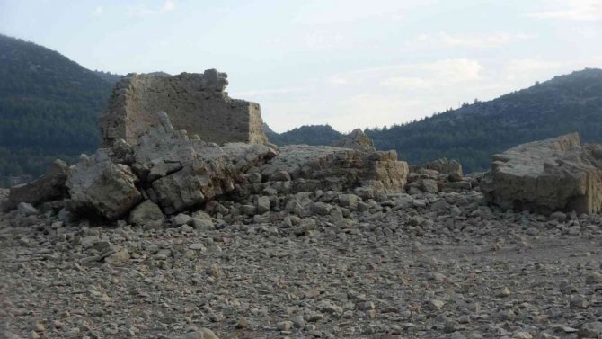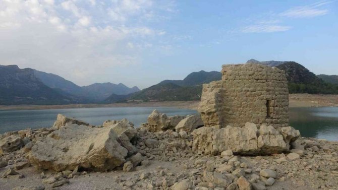 Sular çekildi, Kozan Barajı altındaki tarihi yapılar gün yüzüne çıktı