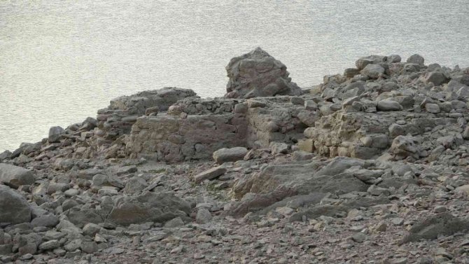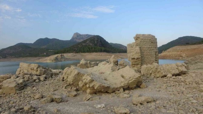 Adana'da Kozan ilçesindeki baraj gölünde kurak yaz mevsiminin ardından suların iyice çekilmesi sonucu Bizans ve Roma dönemine ait kilise ve tarihi yapılar ortaya çıktı.