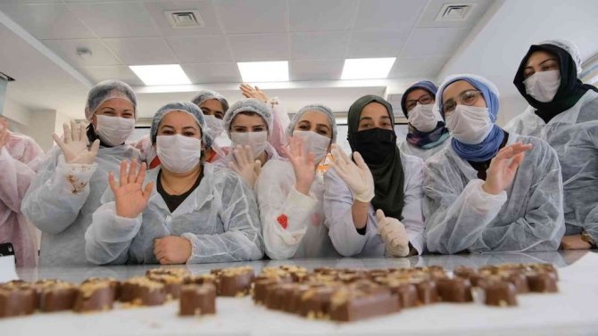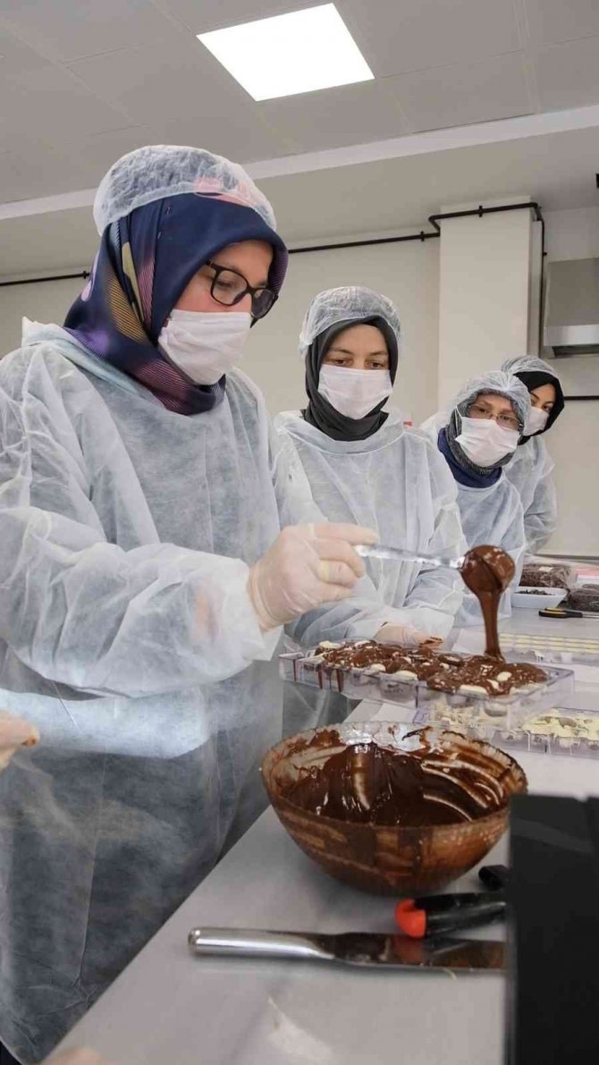 Bu ilgi çekici hikâyeden sonra sıra çeşit çeşit, lezzetli çikolataları hazırlamaya geldi. Hanımlar, uzman eğitmen eşliğinde adım adım ilerlediler. Önce para şeklindeki çikolatalar mikro dalga fırında eritildi. Fırından çıkan çikolatalara temperleme işlemi uygulandı. Eğitmen, tüm bu uygulamalarda dikkat edilmesi gereken püf noktalarını bir bir anlattı. Çikolata çeşitlendirme aşamasında, beyaz çikolata, fındık, fıstık ve üzüm gibi tatlar sahne aldı. Hanımlar, bu malzemelerle arzuladıkları çeşitte çikolataları hazırladılar. Özenle kalıplanıp buzdolabına koyulan çikolatalar bir süre sonra yenilmeye hazırdı. Böylece hanımlar, misafirlerine ikram etmek üzere evde çikolata hazırlamayı uygulamalı olarak öğrenmiş oldu.