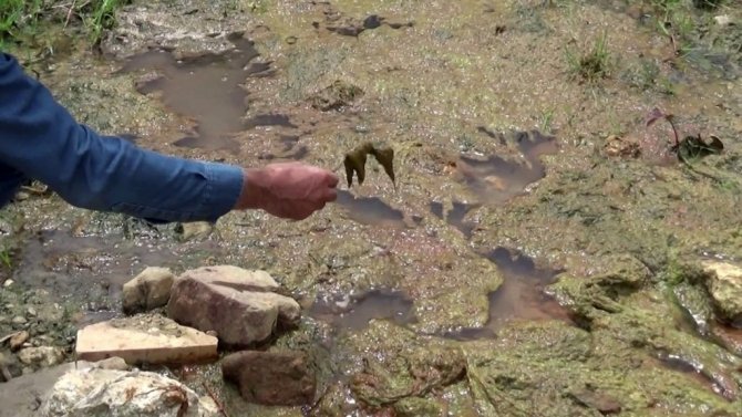 Torununun dudağında çıkan yarayı gösteren Çelik, "Son günlerde çocukların ellerinde ve yüzlerinde sivilceler çıkıyor ve kaşıntı yapıyor doktora götürdük merhem verdiler ama bir işe yaramadı. yağmur yağdığı zaman ise dere taşıyor ve kapımıza kadar geliyor" ifadelerini kullandı.