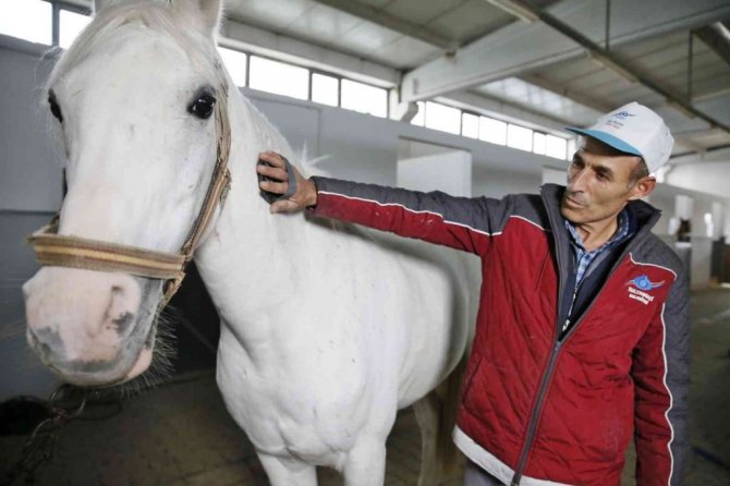Sultangazi’de binicilik tesislerindeki atların bakımı özenle yapılıyor
