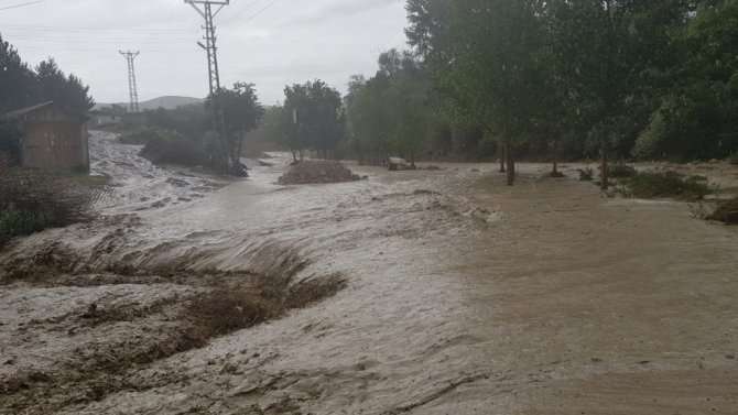 Amasya'da etkili olan sağanak nedeniyle Suluova ilçesinde bulunan bir derede taşkın meydana geldi.