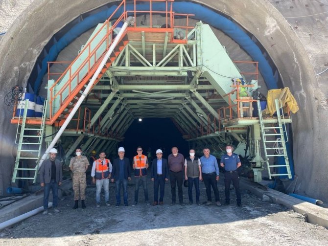 Kaymakam Eyüp Kaykaç, İlçe Jandarma Komutanı Onur Hane, İlçe Emniyet Müdürü Fatih Turan ve İlçe Orman İşletme Müdürü Yüksel Saraç ile Sünebeli Tüneli Şantiyesini ziyaret ederek incelemelerde bulundu.
