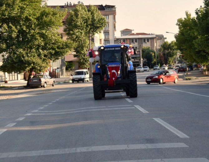 Yapılan konvoy ile Yenişehir caddelerinde dolaşan traktör vatandaşların dikkatini çekerken, çocuklar ve vatandaşlar hatıra fotoğrafı çektirmeyi ihmal etmediler.