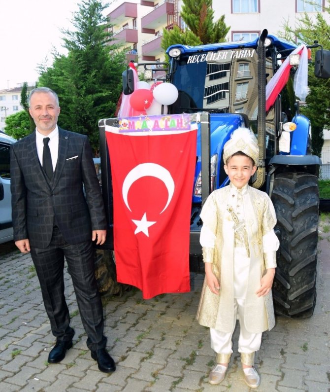 Bursa'nın Yenişehir İlçesinde sünnet arabasının traktör olduğunu gören vatandaşlar hayrete düştü.