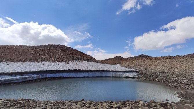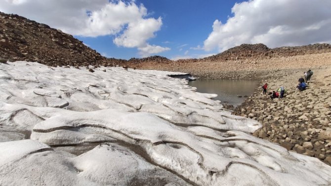 Türkiye'nin en yüksek 3'üncü dağı olan 4 bin 58 rakımlı Süphan Dağı'ndaki kar kütleleri küresel iklim değişikliği nedeniyle hızla eriyor.