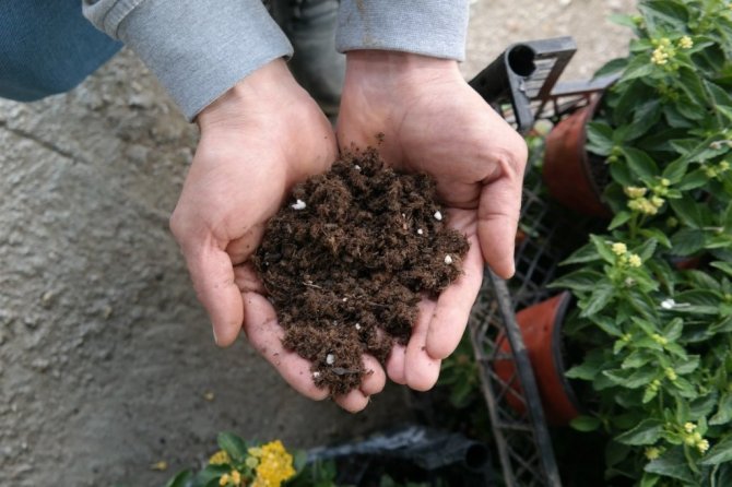 Birçok toprak çeşidi olduğunu aktaran fideci Gökhan Yemencioğlu, "Evlerimizde bitkilerimiz için kullanacağımız topraklar humuslu, kumlu tınlı, hafif süzek olmalı. Piyasada bazı geçirimsiz topraklar var killi dediğimiz. Çok fazla killi toprak olmamalı. Biz mineral maddece ve bitki besin elementlerce yüklü topraklar tavsiye ediyoruz. Yanmış koyun gübresiyle veya hazır torf ile desteklersek çok daha verimli bir toprak elde ederiz. Evde hobi bahçesi tarzı yerlerde bu tür toprakları kullanmalıyız. Daha sonra eğer toprak zayıfsa azot, fosfor, potasyum gibi gübrelerle de destekleyebiliriz toprağımızı" diyerek hobi olarak evlerinde bitki yetiştirmek isteyen vatandaşlara önerilerde bulundu.
