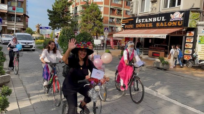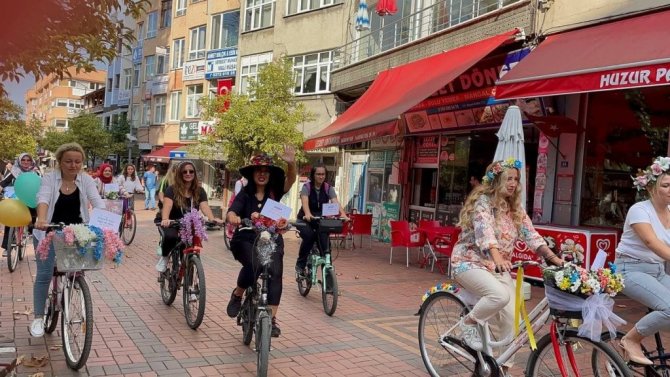 ’Süslü kadınlar’, pedal çevirerek farkındalığa dikkat çekti