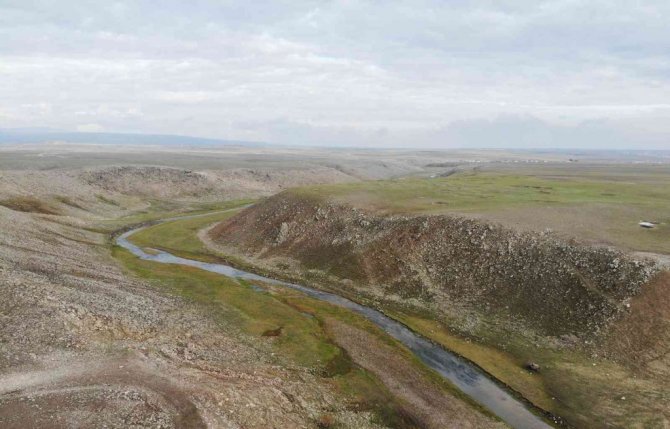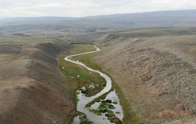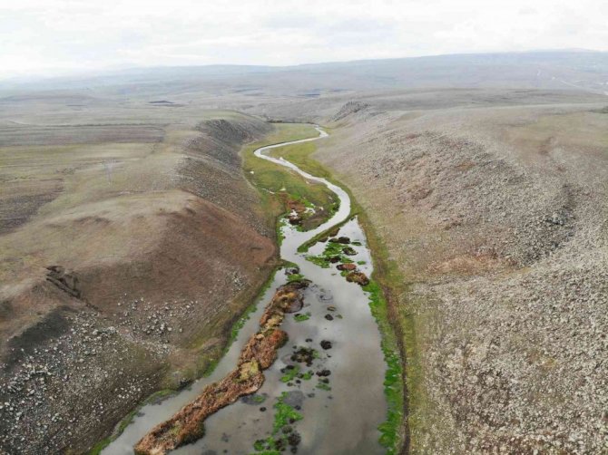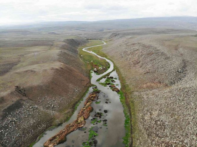 Susuz ilçesinden geçerek Kars Çayı'na karışan Susuz menderesinin dağların arasından yılan gibi kıvrılarak akması havadan görüntülendi. Menderes güzelliğiyle kartpostal görüntüler oluşturdu.