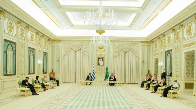 Suudi Arabistan Veliaht Prensi Muhammed bin Selman, Yunanistan Başbakanı Kiryakos Miçotakis ile Suudi Arabistan'ın başkenti Riyad'daki Al Yamamah Sarayı'nda bir araya geldi. Veliaht Prens Selman'ın Ofis Müdürü Bedr el-Asakir yaptığı açıklamada, görüşmede iki ülke arasındaki ilişkilerin ele alındığını ifade ederek, ayrıca bölgesel ve uluslararası arenada iki ülkeyi ilgilendiren konular ve meseleler hakkında görüş alışverişinde bulunulduğunu açıkladı.