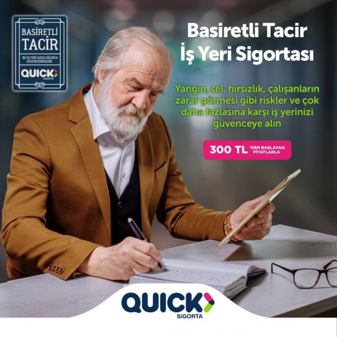 Tacirler için "Basiretli Tacir İşyeri Sigortası", esnaflar için "Yedekleyen İş Yeri Sigortası"nı hayata geçiren Quick Sigorta, "Basiretli Tacir İşyeri Sigortası" ile ticaret erbaplarının da zor zamanlarında imdatlarına yetişmeyi hedefliyor. Basiretli tacir bilir ki iş yerini etkileyecek yangın, sel, hırsızlık, çalışanların zarar görmesi gibi her risk sadece kendisini değil tüm çevresini etkiler. Quick Sigorta bu risklere ve çok daha fazlasına karşı gelecek öngörüsüne sahip iş adamları için "Basiretli Tacir İşyeri Sigortası" ürününü tasarladı. Böylelikle KOBİ ölçeğindeki iş yerlerini risk analizine, otorizasyonlara, yoğun yazışmalara girmeksizin 3 dakikada tüm riskleri güvence altına alabileceği oldukça ekonomik, senelik 300 TL primlerle başlayan bir poliçe sunuyor.