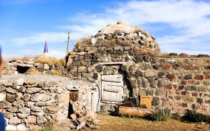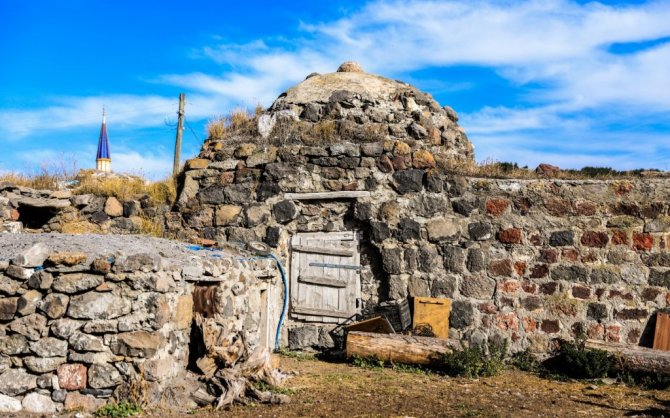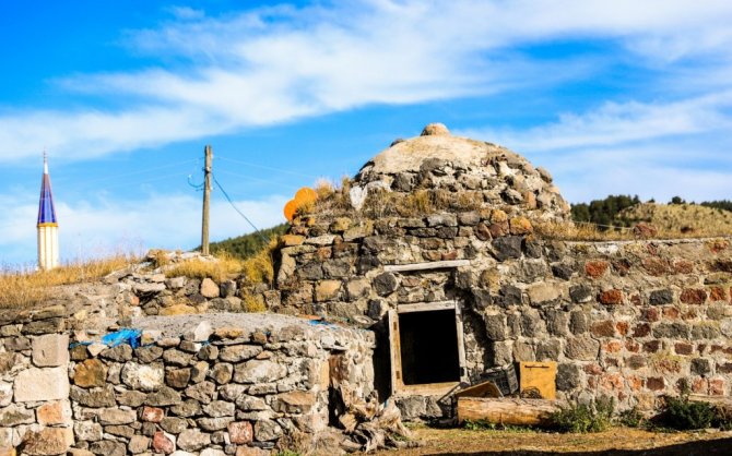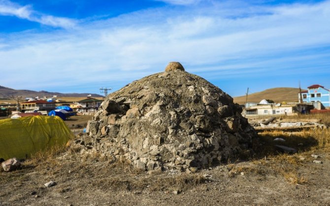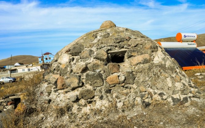 Ardahan merkeze bağlı Altaş köyünde bir evin bahçesinde bulunan tarihi hamam tahıl ambarı olarak kullanıyor.