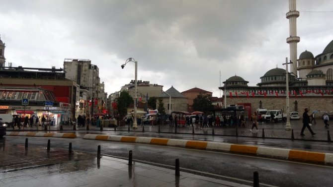 Meteorolojinin sağanak yağış uyarısının ardından Taksim'de önce gökyüzü karardı ardından sağanak yağış başladı.