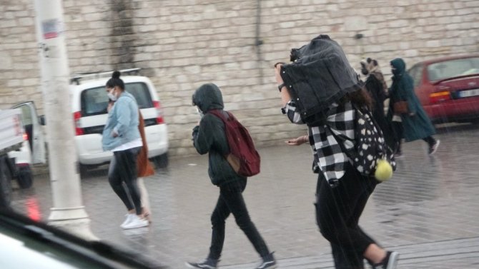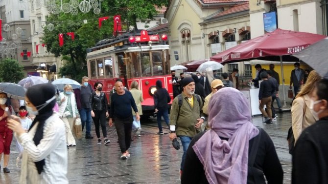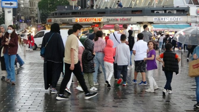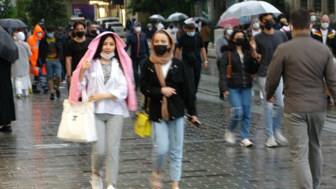 Meteorolojinin sağanak yağış uyarısının ardından Taksim'de önce gökyüzü karardı ardından sağanak yağış başladı. Sağanak yağışa hazırlıksız yakalanan vatandaşlar ise ıslanmaktan kurtulamadı.