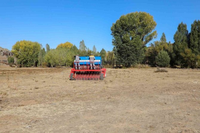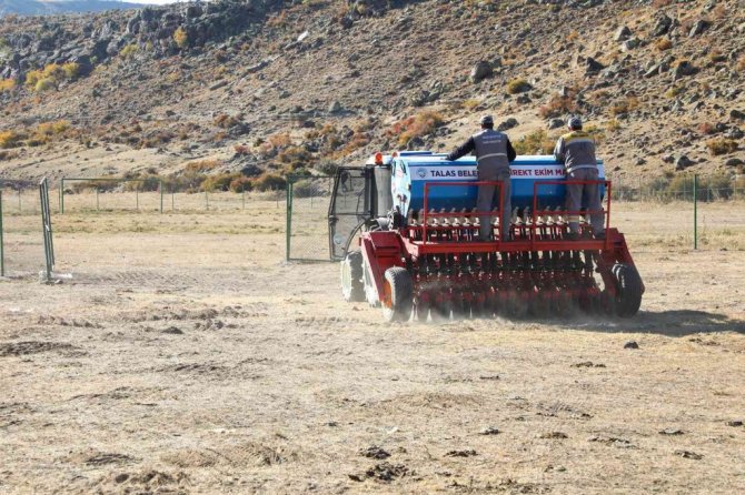 Talas Belediyesi tarafından ilçe kırsalındaki mera alanlarına mera otu ekimi yapılıyor.