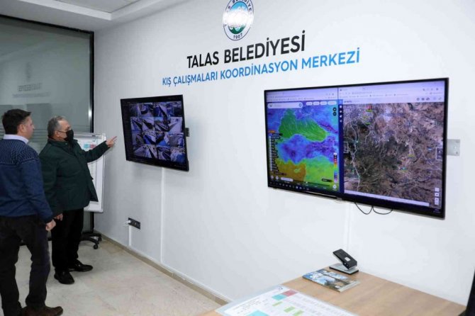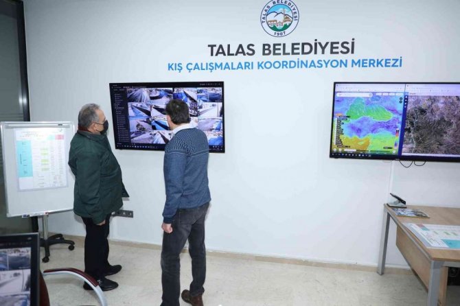 Daha sonra konuya ilişkin bir açıklama yapan Başkan Yalçın, teknolojinin tüm imkanlarından yararlandıklarına dikkat çekerek, "22 kırsal mahallemiz var ve bu 22 kırsal mahallemizin tamamında kamera sistemi var. Kamera sistemleri hem bizim kış çalışmalarının koordinasyonunu sağlamakta hem de güvenlikte çok işimize yarıyor. Kaymakamlığımız, jandarmamız da yer yer bu teknolojik imkânlarımızdan yararlanıyor. Kayseri ve civarında ilk kar yağan köyler Talas'a ait köyler. Cebir, Yazyurdu vs. gibi yüksek rakımlı mahallelerimizde görev yapan arkadaşlarımızla anında bağlantı yapıyoruz. Bir sıkıntı yok çok şükür ve zaten biz hazırdık. Tuzlama çalışmaları devam ediyor. Kış olduğu için akşam biraz dona çekmiş. Ama en güzeli bizim burada kepçecimizi, kamyoncumuzu, tuzlama ekibini görerek hem onların çalışmalarını denetlemek, hem de vatandaşımızın ihbarlarına gerek kalmadan gerekli işlemleri yapma imkanı var burada. Bütün kış boyunca çalışmalarımız bu şekilde devam edecek" dedi.