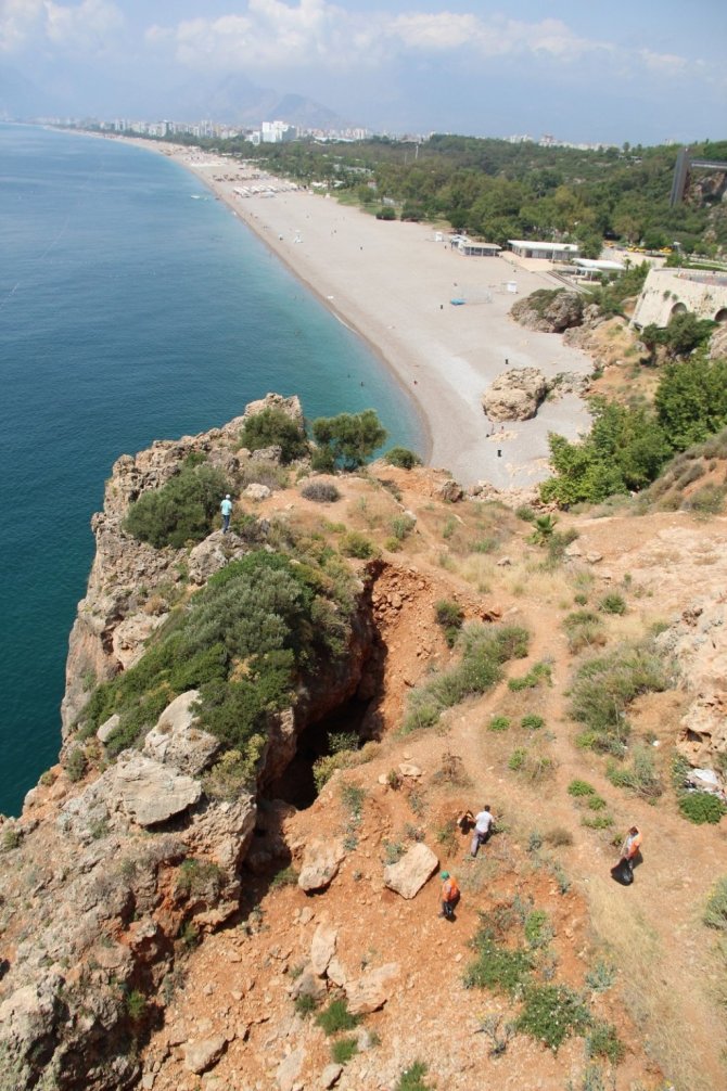Antalya Büyükşehir Belediyesi ekipleri ise hem sahil de hemde varyant altındaki kayalık alanda çöp temizliği yaptı.